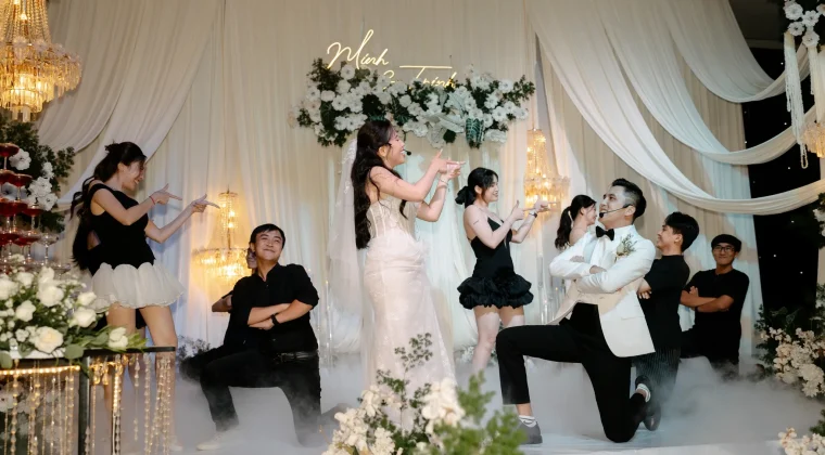 Từ concept trang trí, thiết kế sân khấu, thiệp cưới, video trình chiếu cho đến kịch bản dẫn dắt chương trình đều được xây dựng dựa trên câu chuyện thật của cặp đôi. Điều này không chỉ giúp lễ cưới trở nên khác biệt mà còn tạo nên sự kết nối cảm xúc mạnh mẽ với khách mời, khiến họ cảm thấy mình đang tham dự một khoảnh khắc ý nghĩa chứ không chỉ là một buổi tiệc thông thường.