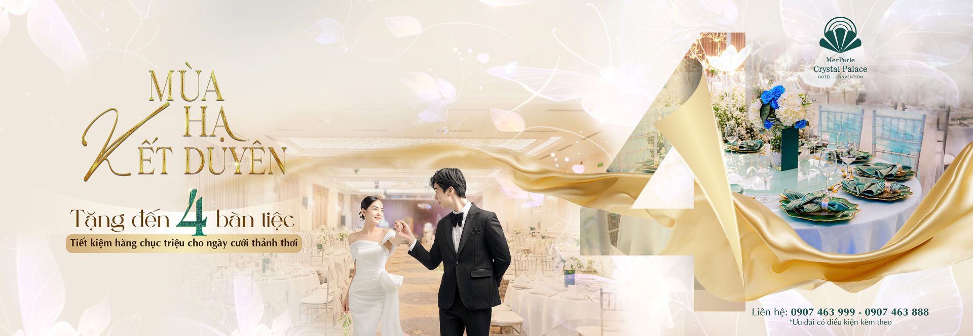 Sau những ngày tháng cùng nhau đi qua giông bão, ai cũng mong có một ngày được nắm tay người thương bước vào lễ đường nơi mà mọi khoảnh khắc đều đáng nhớ. Mùa hè này, Crystal Palace mong được đồng hành cùng bạn viết nên chương đẹp nhất ấy trong chương trình ưu đãi cưới “MÙA HẠ KẾT DUYÊN”. Không chỉ là không gian sảnh tiệc sang trọng hay dịch vụ chuyên nghiệp, chúng tôi dành tặng các cặp đôi những món quà thiết thực.